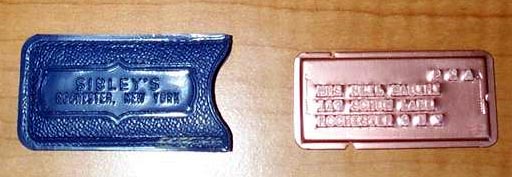 Вот еще одна интересная карта из металла. Эмитент - сеть магазинов ''Sibley's in Rochester, New York''. Карта изготовлена из медного сплава... Интересно, что к карте прилагается специальный чехол: